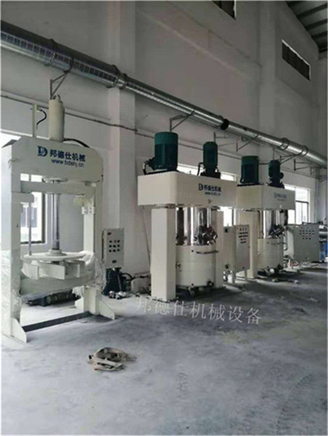 另两支单独动力装置的高速分散齿盘亦随公转一起沿搅拌桶内运转,进行高效分散,乳化,高速分散齿盘为变频调速,可根据生产工艺自定转速。